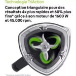 - Système de verrouillage : Nouveau système sécurisé du verrouillage automatique sur la base pour que les lames soient parfaitement immobilisées lorsque vous verrouillez le bol