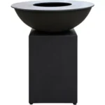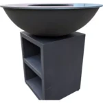 Le socle est fabriqué en acier Corten revétu d’un peinture poudre spéciale haute températures pour les versions noir