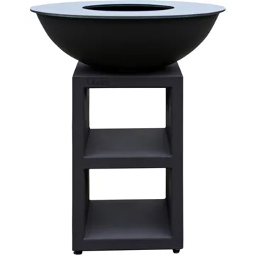 Le socle est fabriqué en acier Corten revétu d’un peinture poudre spéciale haute températures pour les versions noir