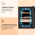 - Thermoélectrique : réfrigération stable pour des températures de 14 à 18 °C