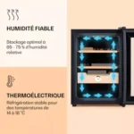 - Thermoélectrique : réfrigération stable pour des températures de 14 à 18 °C
