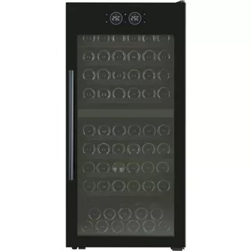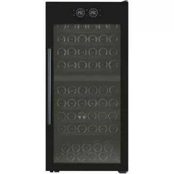 - Type de porte : vitrée, permet de visualiser facilement les bouteilles sans avoir à ouvrir la porte, ce qui réduit la circulation de l’air dans la cave et donc la variation de la température. Le traitement anti-uv protège le contenu.