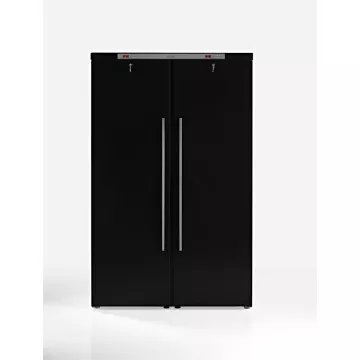 - Type de porte : vitrée, permet de visualiser facilement les bouteilles sans avoir à ouvrir la porte, ce qui réduit la circulation de l’air dans la cave et donc la variation de la température. Le traitement anti-uv protège le contenu.