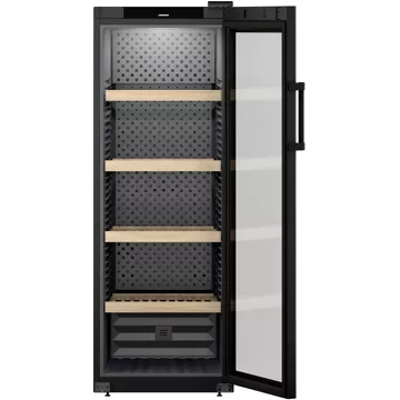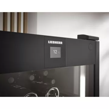 - Type de porte : vitrée, permet de visualiser facilement les bouteilles sans avoir à ouvrir la porte, ce qui réduit la circulation de l’air dans la cave et donc la variation de la température. Le traitement anti-uv protège le contenu.