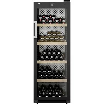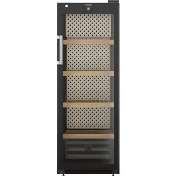 - Type de porte : vitrée, permet de visualiser facilement les bouteilles sans avoir à ouvrir la porte, ce qui réduit la circulation de l’air dans la cave et donc la variation de la température. Le traitement anti-uv protège le contenu.