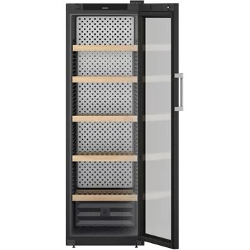 - Type de porte : vitrée, permet de visualiser facilement les bouteilles sans avoir à ouvrir la porte, ce qui réduit la circulation de l’air dans la cave et donc la variation de la température. Le traitement anti-uv protège le contenu.