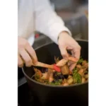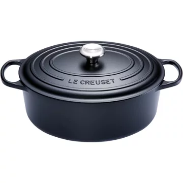 Cuisson au Four : La température maximale supportée par les produits dont les boutons de couvercle sont en phénolique noire est de 200°C / 392°F / thermostat 5 (en Europe thermostat 6 pour les fours à gaz). Les produits comportant des poignées en fonte ou en inox peuvent être utilisés à toutes températures. Les ustensiles munis de poignées ou de boutons en bois ne doivent pas être utilisés au four. Pour le bouton phénolique noir, la température maximale d’utilisation au four est de 200°C/390°F/Thermostat 6. Les produits avec poignées fonte et/ou bouton métal inox, ci-après, peuvent être utilisés au four sans limitation de température.Fours à revêtement en fonte : Ne placez aucun article de cuisson sur la sole d’un four habillé de fonte. Cela augmenterait la température de l’ustensil et accélérait donc la vitesse de cuisson au détriment de la qualité. Pour de meilleurs résultats, posez-le toujours sur une grille ou sur une plaque. L’émail noir satin est principalement utilisé sur des articles comme les grills, les skillets, les skillet grils, les poêles, les sauteuses, les woks, les tajines plus spécifiquement étudiés pour griller, frire et faire sauter et certaines cocottes. L’émail noir satin a été spécialement conçu pour cuire à des températures relativement élevées mais avec un réglage modéré de la source de chaleur. La fonte a une telle capacité de rétention de la chaleur qu’elle chauffe le récipient uniformément à feu moyen. Les températures élevées provoquent une surchauffe et une adhérence des aliments. Vous obtiendrez de meilleurs résultats à des températures moyennes et douces. L’émail noir satin à l’usage prendra une patine noir bruni. Celle-ci est liée à l’action des huiles et des graisses des aliments sur la surface chaude. Elle accroît la performance de la cuisson et le glissement des aliments sur la surface. À terme, elle permet d’utiliser moins de matières grasses.Griller : Grils et skillet grils exigent un préchauffage à vide qui permettra à la surface de cuisson d’atteindre la température élevée nécessaire pour caraméliser ou dorer. Ce conseil ne s’applique pas aux autres produits. Les marques typiques de grillade n’apparaîtront pas si la surface de cuisson est trop froide ou si l’aliment est trop humide. Utilisez le papier de cuisine pour éliminer l’excès d’humidité (y compris pour les aliments marinés). Pour éviter surchauffe et fumée éventuelles, ne chauffez pas d’huile dans une poêle froide. Placez le gril vide sur feu moyen et laissez-le chauffer. Trempez vos doigts dans l’eau et jetez-en quelques gouttes sur la surface chaude. Si elles grésillent et s’évaporent immédiatement, votre poêle est chaude et prête à être utilisée ; sinon, laissez la poêle chauffer encore et répétez le test de l’eau. Lorsque la surface est chaude, huilez-la légèrement à l’aide d’un vaporisateur d’huile ou d’un pinceau de cuisine en silicone Le Creuset. Pour que les marques de grillade soient bien nettes, laissez l’aliment suffisamment longtemps sur la surface de cuisson avant de le retourner, les aliments doivent se détacher tous seuls, sinon continuer la cuisson.Frire et faire sauter : Frire et faire sauter un aliment exige de faire chauffer le récipient et la matière grasse en même temps. Le corps gras est assez chaud lorsque vous observez sur sa surface, pour l’huile une légère ondulation ou, pour le beurre et les autres graisses, une formation de bulles ou de mousse.