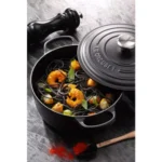 • Particularité : Répartition uniforme de la chaleur du fond de la cocotte jusqu’au couvercle, Couvercle hermétique pour conserver uniformément la chaleur.