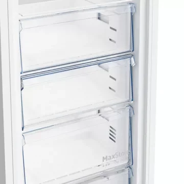 Le confort d’utilisation est au coeur de la conception du BEKO B5RFNE295W. L’écran LCD en façade permet un contrôle aisé des fonctions telles que la température, la congélation rapide ou le mode éco. La Maxi Box offre une solution ingénieuse pour optimiser le rangement : transformez deux compartiments en un seul en retirant la clayette en verre, et gagnez jusqu’à 30% d’espace supplémentaire pour des aliments volumineux. La poignée à ouverture assistée, quant à elle, garantit une ouverture de porte sans effort tout en préservant l’intégrité des joints. Avec ses 5 tiroirs et son design épuré en blanc, ce congélateur vertical s’intègre parfaitement dans tout type de cuisine, tout enoffrant une expérience utilisateur des plus agréables.