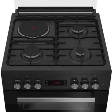 La puissance mixte de la cuisinière FSE63310DBP de Beko délivre une cuisson parfaite quel que soit votre plat. Les trois brûleurs à gaz et le foyer électrique de la plaque de cuisson s’adaptent quant à eux à tous les récipients et toutes les recettes. D’un seul geste grâce à des commandes individuelles ergonomiques, la plaque de votre cuisinière Beko fera mijoter, bouillir et réchauffer tous vos plats.