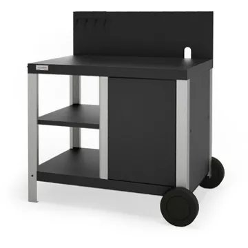 « . 1 plateau supérieur 87*54 cm. 1 Crédence haute 87*27 cm avec porte-ustensiles. 2 étagères 43*36 cm. 1 porte avec système d’ouverture » push-pull » (une simple pression déclenche l’ouverture de la porte) pour dissimuler la bouteille de gaz. 2 roues avec enjoliveurs. 1 poignée. En version ino satiné. Dimensions : L99 P64 H102 . A monter soi-même. Certification Origine France Garantie. Garantie : 5 ans »Déplacement facile sur tout type de terrain : 2 roues avec enjoliveurs et 1 poignéeLarge espace de travail : plateau supérieur 87×54 cm pouvant recevoir la plancha Allure 260 avec son couvercleEspace de rangement fonctionnel : 2 étagères, 1 espace de rangement fermé pour la bouteille de gaz et un porte-ustensiles inclus