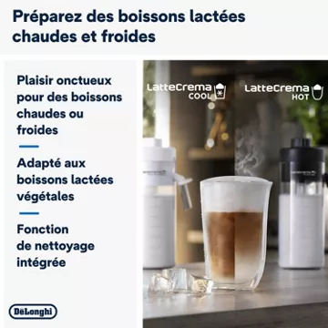 • Système de boissons lactées : carafe à lait amovible pour préparer automatiquement vos boissons lactées et conserver votre lait au réfrigérateur