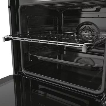 - Rails téléscopiques : ils permettent d’accéder à vos plats en les faisant coulisser en dehors de l’enceinte de cuisson en évitant les risques de basculement. Vous pourrez arroser confortablement votre rôti ou retourner facilement vos plats sans risque de brûlure.
