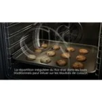 - Avantage de la chaleur tournante pulsée : le four est équipé d’un ventilateur et d’une résistance circulaire situées sur la paroi arrière du four, pour une cuisson simultanée de différents plats sur plusieurs niveaux