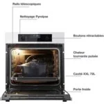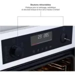 - Avantage des boutons rétractables : Les commandes peuvent être rentrantes pour le côté esthétique du four, pour le nettoyage et pratique au niveau sécurité lorsque le four est à hauteur d’enfant.