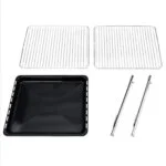 - Rails téléscopiques : ils permettent d’accéder à vos plats en les faisant coulisser en dehors de l’enceinte de cuisson en évitant les risques de basculement. Vous pourrez arroser confortablement votre rôti ou retourner facilement vos plats sans risque de brûlure.
