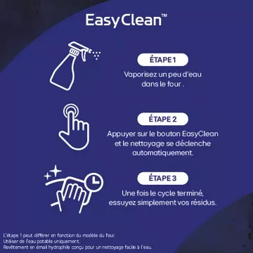 - Nettoyage express : EasyClean™ : un programme de nettoyage vapeur de 10 minutes seulement à 60°