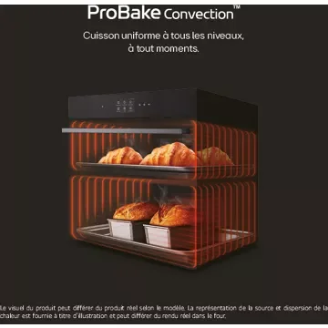 - Avantage de la chaleur tournante pulsée : le four est équipé d’un ventilateur et d’une résistance circulaire situées sur la paroi arrière du four, pour une cuisson simultanée de différents plats sur plusieurs niveaux