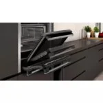 - Type d’ouverture de porte : Coulissante : La porte du four se cache et disparait sous le four. Plus de risque de brûlures, la porte ne gène plus.