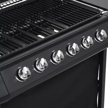 Le gril à gaz dispose d’un design élégant et fonctionnel. Il a une grande surface de cuisson et une hotte robuste avec un thermomètre intégré qui affiche avec précision la température de cuisson. Une table d’appoint offre un espace de travail supplémentaire pour faire des sauces ou vos plats favoris. Un récipient d’égouttage à graisse amovible est également inclus et est facile à nettoyer.