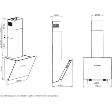 • Type de hotte : : décorative murale inclinée – évacuation et recyclage