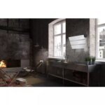 - Type de hotte : décorative murale inclinée, combine style et fonctionnalité. Sa conception permet de mieux gérer l’espace au-dessus de la zone de cuisson. Elle évite de devenir un obstacle dans l’espace de cuisson et n’obstrue pas la vue, rendant plus facile la préparation des plats.