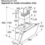 - Largeur : 89 cm, pour une zone de cuisson allant jusqu’à 90 cm de largueur.