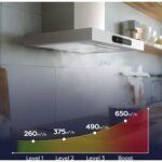 - Nombre de vitesse d’aspiration : 4, permet un contrôle précis de l’extraction d’air, s’adaptant aux différentes intensités de cuisson. Il offre une flexibilité pour ajuster la puissance selon les besoins, réduisant le bruit et la consommation d’énergie lorsqu’une extraction moindre est suffisante.