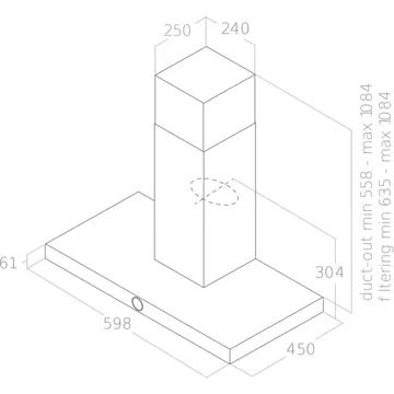 • Débit d’air maxi : 540 – idéal pour une cuisine de 25m².