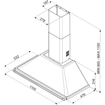 - Largeur : 110 cm, pour une zone de cuisson allant jusqu’à 110 cm de largueur.