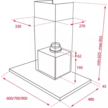 - Largeur : 90 cm, pour une zone de cuisson allant jusqu’à 90 cm de largueur.