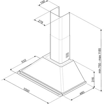 - Largeur : 100 cm, pour une zone de cuisson allant jusqu’à 100 cm de largueur.