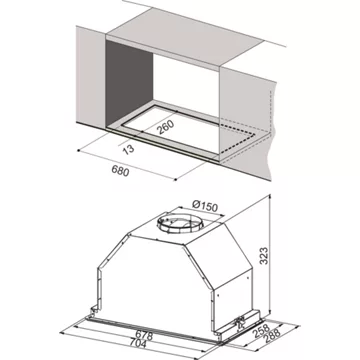 • Type de hotte : : encastrable plafond – évacuation et recyclage