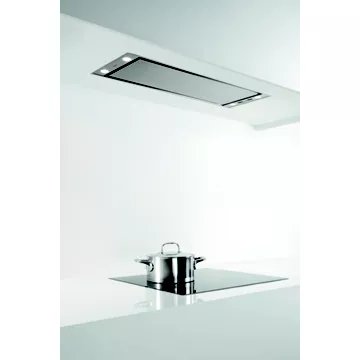 - Type de hotte : plafond, offre un design contemporain et dégagé, libérant l’espace mural. Elle assure une capture optimale des fumées et odeurs de cuisson, tout en créant une ambiance moderne et sophistiquée dans la cuisine, idéale pour un style de vie moderne et élégant.