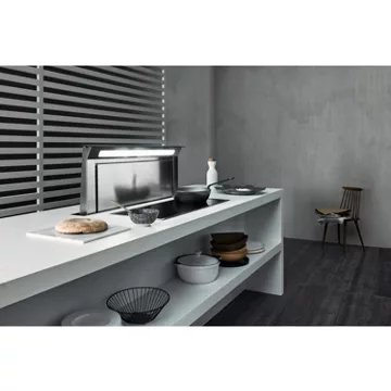 - Type de hotte : plan de travail, offre une solution discrète et élégante pour une extraction efficace des fumées et odeurs de cuisson. Intégrée directement dans le plan de travail, elle préserve l’esthétique de la cuisine tout en maximisant l’espace disponible.