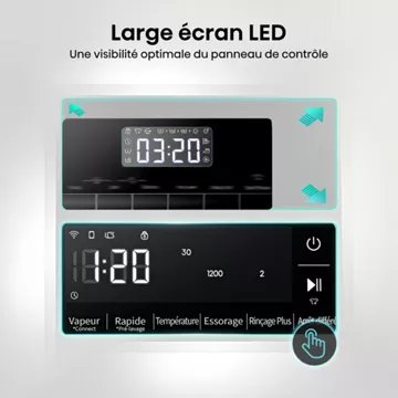 - Personnalisation du temps de lavage : oui, après sélection de votre programme de lavage, ajustez la durée du programme selon vos besoins. Conseil : une durée courte est plus énergivore !