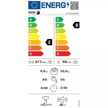 • Consommation en eau (programme éco, lavage et séchage) : 89,0 litres / cycle