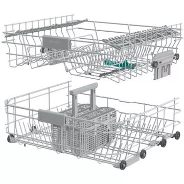 - Avantage du panier supérieur réglable en hauteur : Permet de laver des plats de grandes tailles ou de grands verres à pieds.