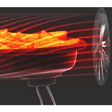Le micro ondes 3 en 1 facile à utiliser qui connaît le niveau de puissance et le temps appropriés pour convenir aux aliments que vous cuisinez Cuisson combinée avec Airfry , four à convection et micro ondes. Faites frire à l’air chaud des frites, des ailes de poulet, les plats préférés de la famille et bien plus encore. Des températures plus élevées combinées à une super convection (flux d’air maximisé) offrent de délicieux aliments croustillants et dorés frits à l’air chaud.