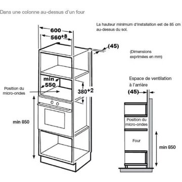 • Hauteur niche d’encastrement : Micro ondes hauteur 38 cm