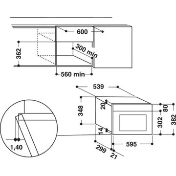 • Hauteur niche d’encastrement : Micro ondes hauteur 38 cm