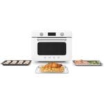 Le Mini four SMEG COF01WHEU, avec son esthétique inspirée des années 50, apporte une touche de nostalgie et d’élégance à toute cuisine. Sa couleur blanche brillante, ses touches de gris et ses finitions chromées brillantes reflètent le souci du détail et la qualité de fabrication de la marque. Doté d’une capacité de 30 litres et d’un afficheur LCD couleur, ce four combiné vapeur pose libre est conçu pour s’adapter aux besoins contemporains. Les utilisateurs bénéficient d’une température de cuisson réglable électroniquement de 40 °C à 230 °C, ainsi que d’une minuterie allant jusqu’à 13 heures pour une gestion précise de la cuisson.
