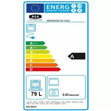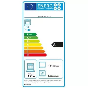 • Valeurs du label énergie : Label énergie A, Consommation en convection naturelle 0,88 kW, Consommation en chaleur tournante 0,83 kW
