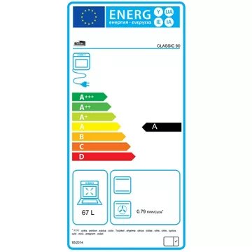 - Valeurs du label énergie : Label énergie A, Consommation en convection naturelle 0,83 kW, Consommation en chaleur tournante 0,79 kW
