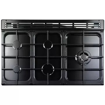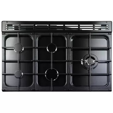 Falcon a disposé le réglage de la température à l’avant. Ceux-ci commandent aux 5 brûleurs à gaz du Prof+ FX 90 DF, dont un est spécialement consacré aux woks. Ils disposent de cette façon d’une puissance de 1000 à 3000 watts par foyer, pour une puissance totale avoisinant les 11 kilowatts.Ces caractéristiques destinent nettement l’appareil à une utilisation professionnelle.