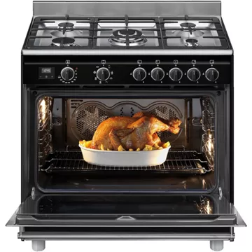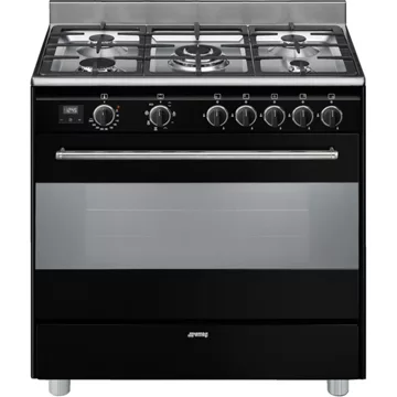 Le four principal du SMEG BG91CTN2, avec sa cavité de 115 litres et son système de chaleur tournante, assure une cuisson homogène pour des résultats toujours parfaits. Avec 8 fonctions de cuisson, dont la chaleur brassée et le gril fort ventilé, ce piano de cuisson répond à tous les besoins culinaires. La classe d’efficacité énergétique A confirme l’engagement de SMEG en matière de respect de l’environnement, sans compromis sur la performance. La présence d’un allumage intégré aux manettes, d’un thermocouple de sécurité et d’un éclairage halogène complète l’expérience utilisateur en alliant confort d’utilisation et sécurité.