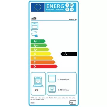 - Valeurs du label énergie : Label énergie A, Consommation en convection naturelle 0,79 kW, Consommation en chaleur tournante 0,88 kW