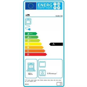 - Valeurs du label énergie : Label énergie A, Consommation en convection naturelle 0,78 kW, Consommation en chaleur tournante 0,88 kW