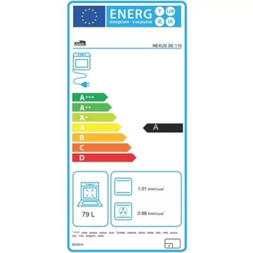- Valeurs du label énergie : Label énergie A, Consommation en convection naturelle 0,83 kW, Consommation en chaleur tournante 0,88 kW