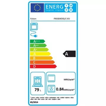 - Valeurs du label énergie : Label énergie A, Consommation en convection naturelle 0,79 kW, Consommation en chaleur tournante 0,84 kW
